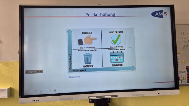 Auch das Assessmentcenter (= ein Auswahlverfahren, um BewerberInnen besser kennenzulernen und einzuschätzen) und die herausfordernde Postkorbübung, bei der Organisationstalent gefragt ist, wurden vorgestellt. 📋